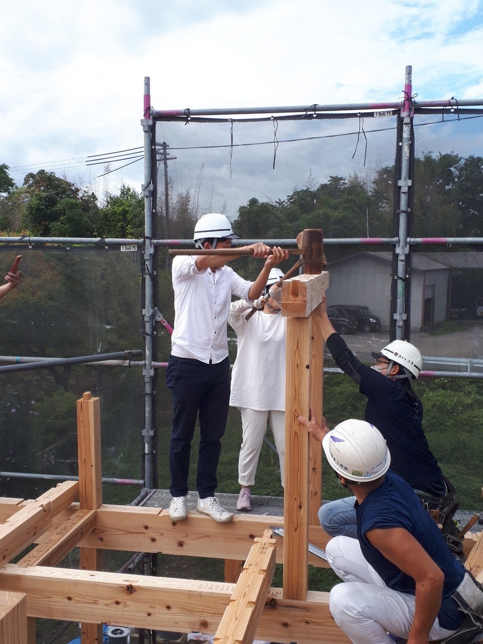 立町の家がいよいよ上棟の日を迎えました。 地鎮祭から今日まで、お施主様と共に描いてきた「かたち」が、 いよいよ現実の姿として立ち上がっていく、家づくりにとって大切な節目です。 現場では木の香りが立ちのぼり、職人たちの掛け声が響く中、図面の中で想像してきた 空間が「家」として輪郭を現していくその瞬間は、何度立ち会っても心が高鳴ります。 この日は、黒岡の家のお施主様も偶然現場を訪れてくださいました。「同じ丹波篠山の地で、同じ時期に家づくり……