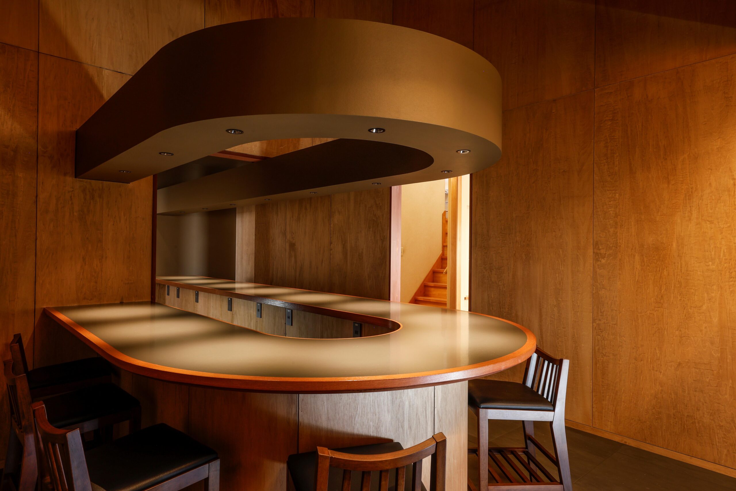 カウンターはどっしり構えるブビンガの一枚板 人が集まり、会話が生まれ、長く愛される場所へ 「施工事例」よりご覧いただけます。……