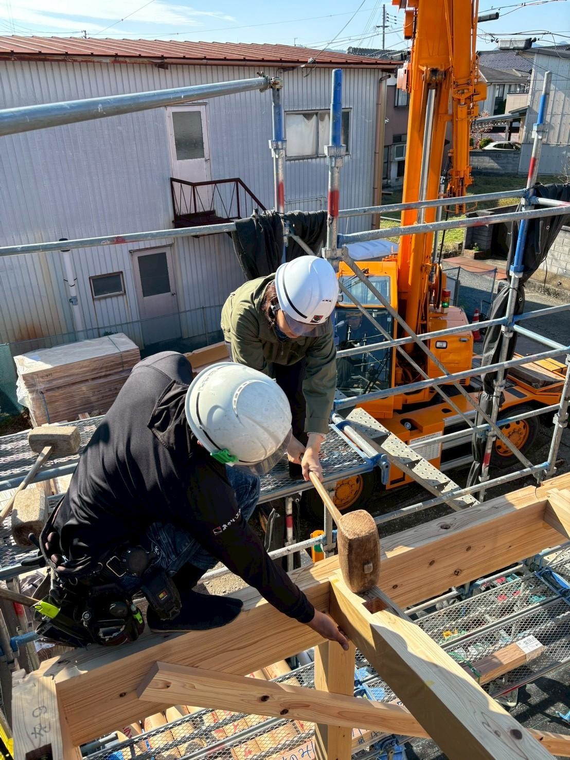柱を木槌で叩き込んでいただきました。その表情は、少し緊張しながらも嬉しそうでした。
