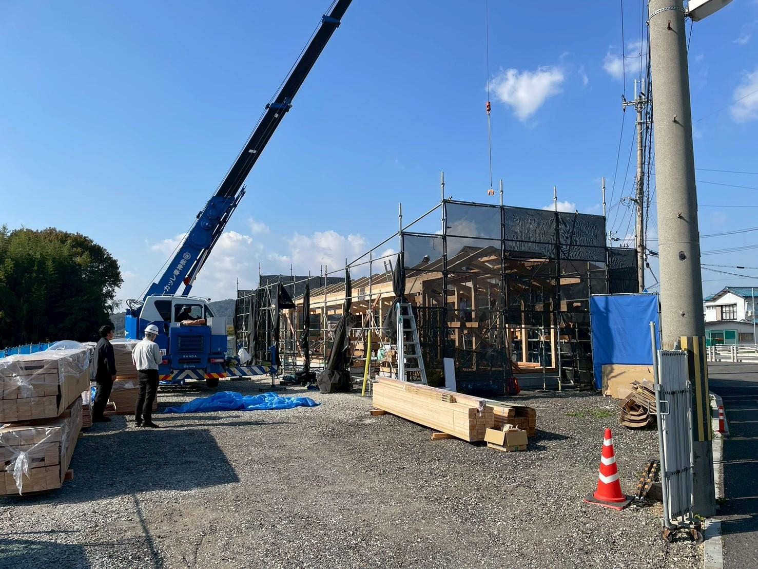 土台が据わり、構造材が並ぶと建物の気配がふわりと立ち上がりました。