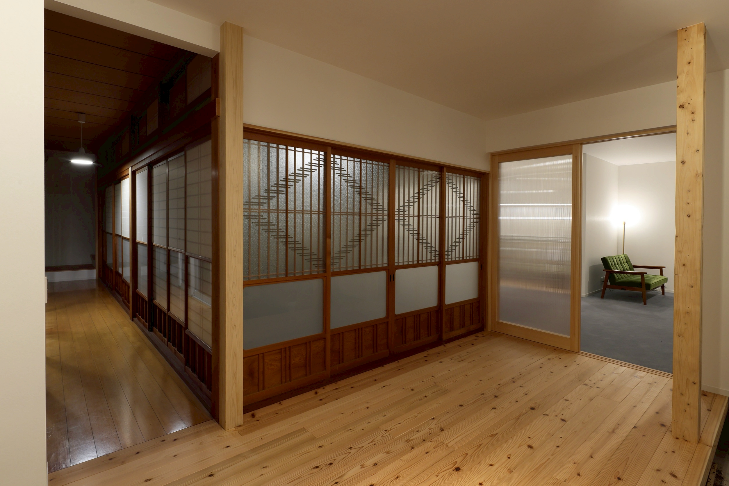 古い建具と新しい建具が違和感なくつながり、