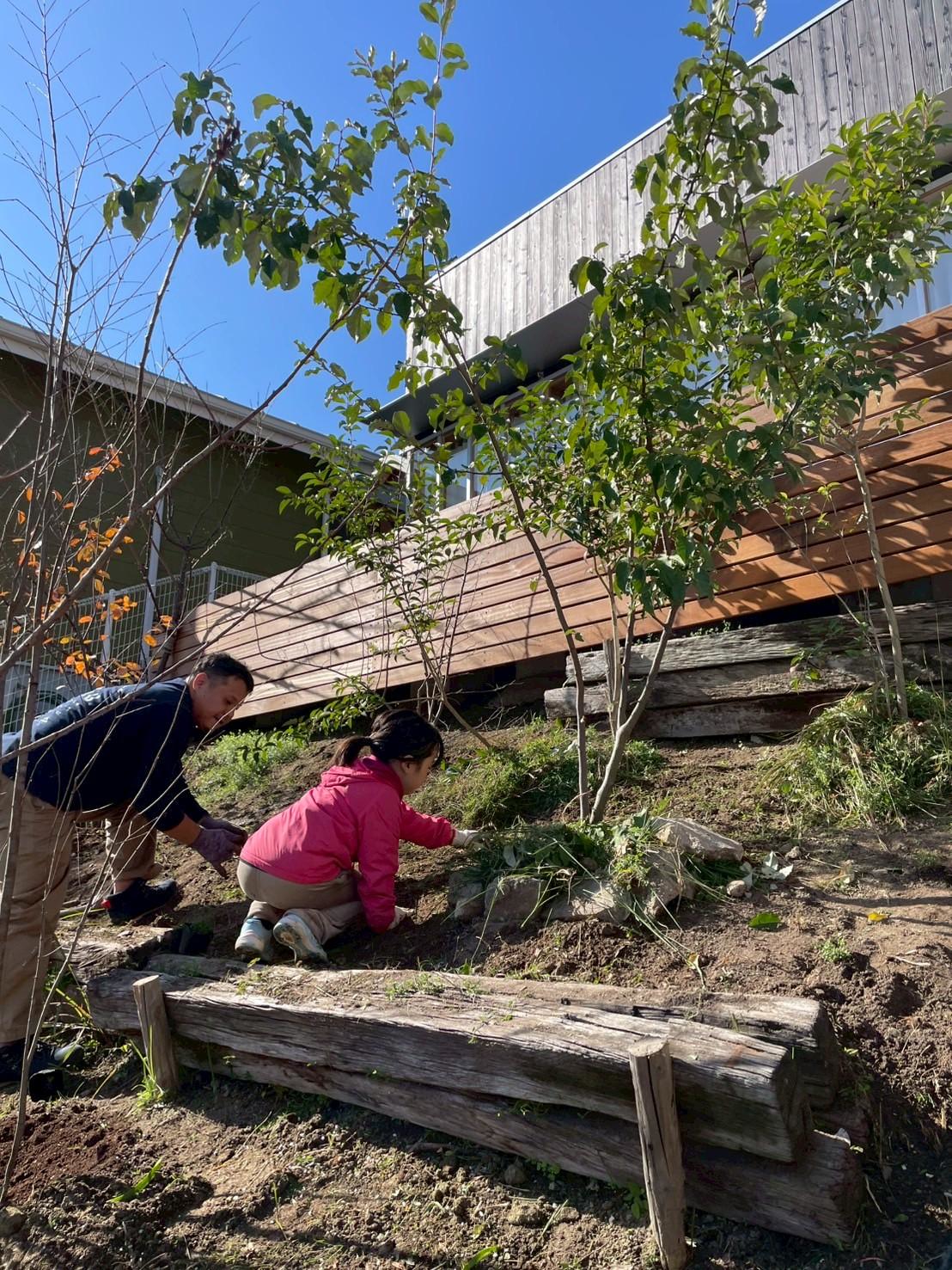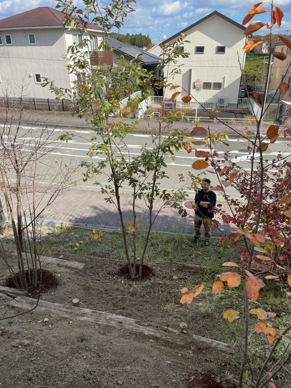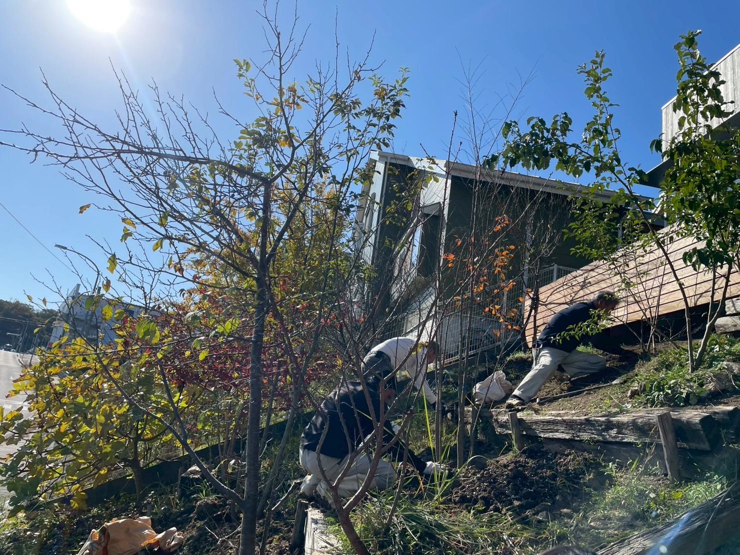 今年9月に工事を終え、植栽をようやくこの秋、お客様と一緒に植栽作業の日を迎えました。