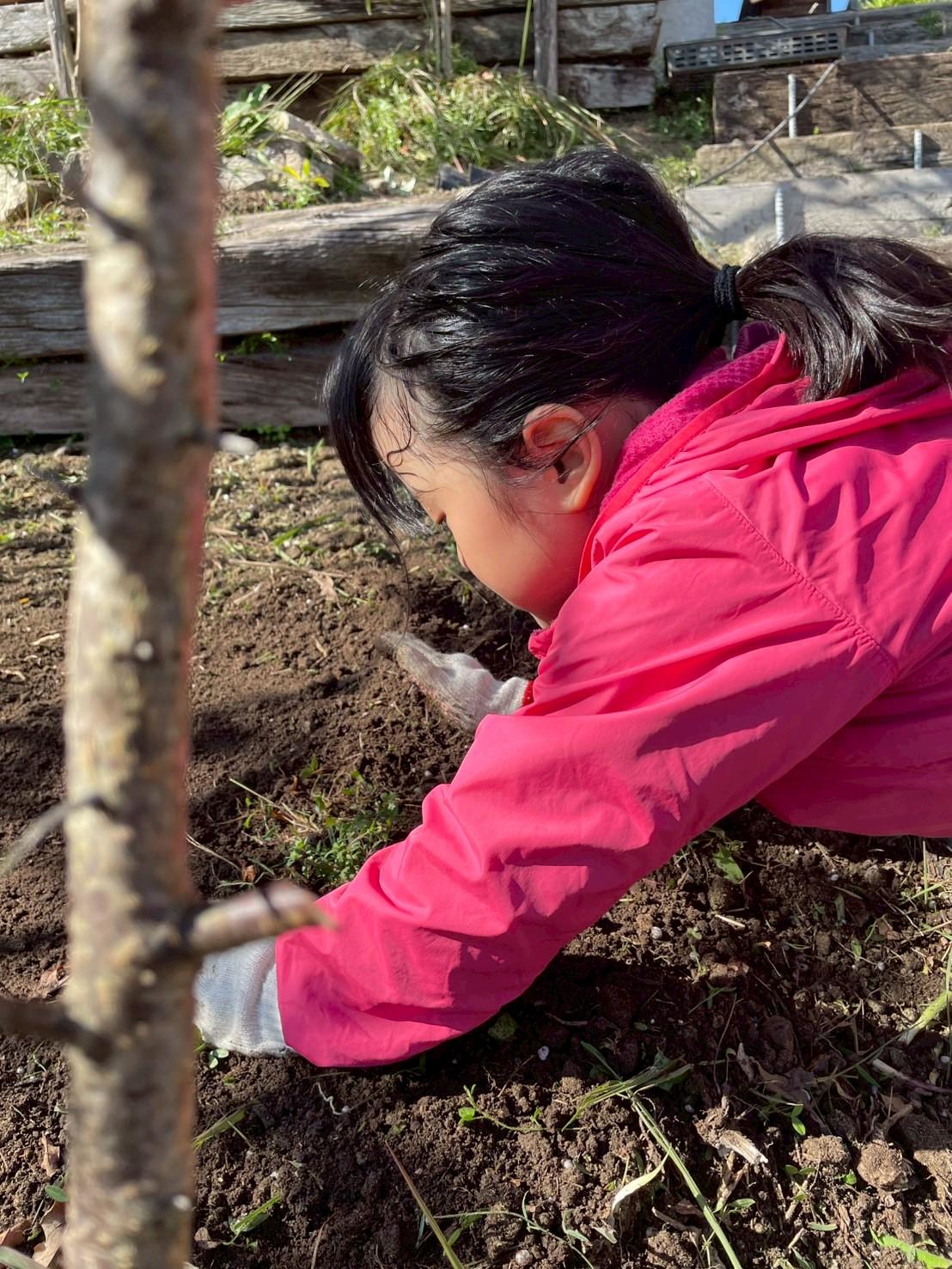 ただ植えるだけじゃなく、土を触りながら「ここが玄関に続く香りの道になるんですよ」
