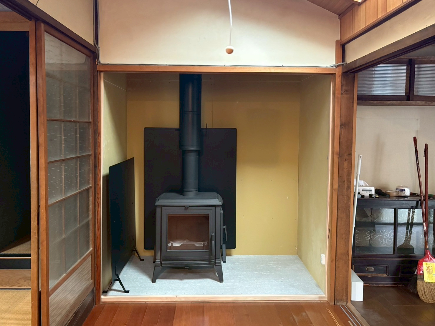 薪ストーブの設置位置を現場で検討しながら、自然と人が集まる場所へ。