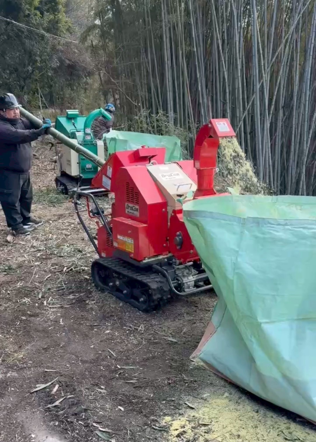 伐採した青竹は粉砕機でチップにし、発酵させ、将来的には畑の肥料(ぼかし)として活用する予定です。